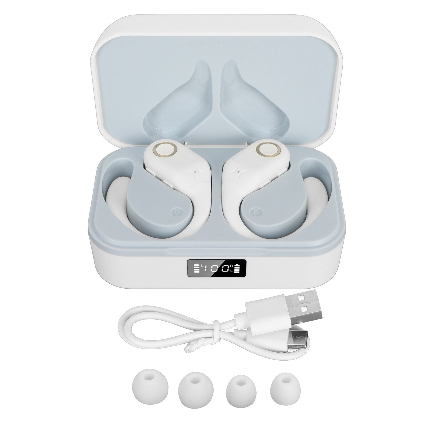 Bluetooth Translator Earbuds 144 Languages Noise Reduction Charging Case White
